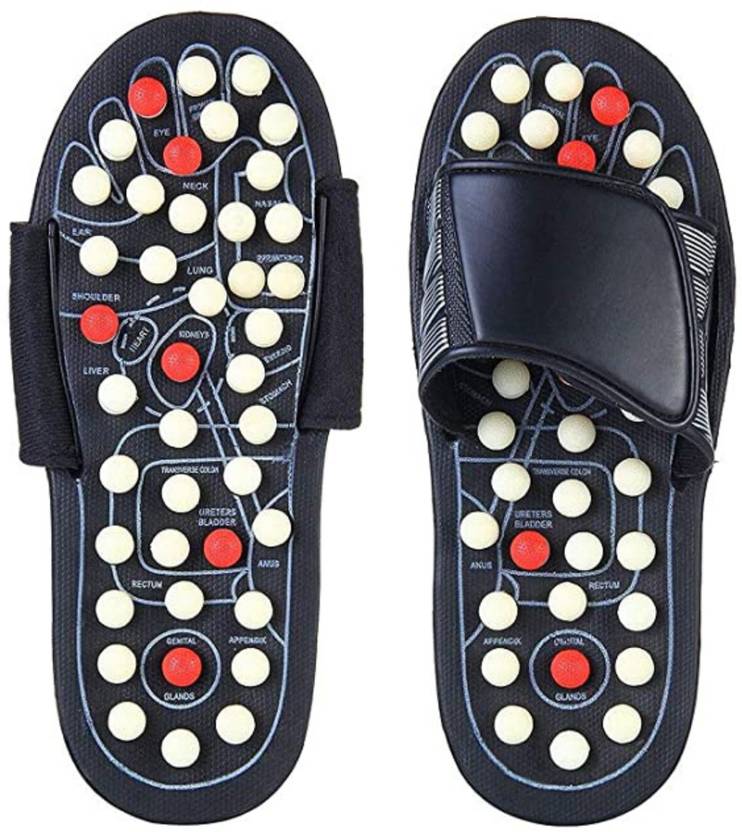 Acupressure sandals are specifically designed to stimulate the soles of the feet which have hundreds of nerve endings.Th is special foot massaging action can improve circulation and alleviate fatigue.S imply walking in your acupressure sandals promotes healthy blood flow, increases oxygen, induces relaxation and re-energizes feet and legs.Th e acupressure massage therapy stimulates and activates the body's own energies to help fight illness and restore harmony.Ac upressure has a lot of advantages for physical, spiritual, and mental health. It helps to relieve pain, reduce strain, increase blood circulation, and provides a relaxing effect to the body.In a nutshell, acupressure involves the simple act of applying pressure to various points on our bodies and it does wonders to alleviate the aches, pains, tension, and built up stresses on our bodies.