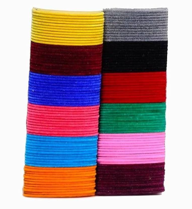 Metal base Metal Velvet Bangles Set Multi Colours Metal Velvet Bangles (Pack of 144)
