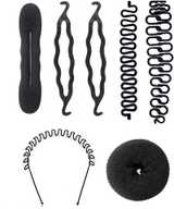 Out Of Box Combo of 7 Hair Accessories 1 Round Donuts 3 Magic Donut volumizer 2 Design French Tool With Zigzag Hair Band Bun (Black)