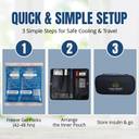 The Insulated Bag and Frozen Gel Packs inside the pouch help to maintain the temperature of the Insulin and other medication for up to 6 hours* (2°C to Room temperature)