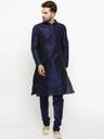 The kurta is crafted from premium jacquard fabric, known for its rich texture and intricate woven patterns that reflect fine craftsmanship. These subtle designs add depth and elegance to the outfit without overpowering its traditional appeal. The structured yet comfortable silhouette ensures a graceful drape, enhancing your overall look while allowing ease of movement. Carefully finished seams and a well-balanced fit showcase the fusion of traditional aesthetics with contemporary tailoring.