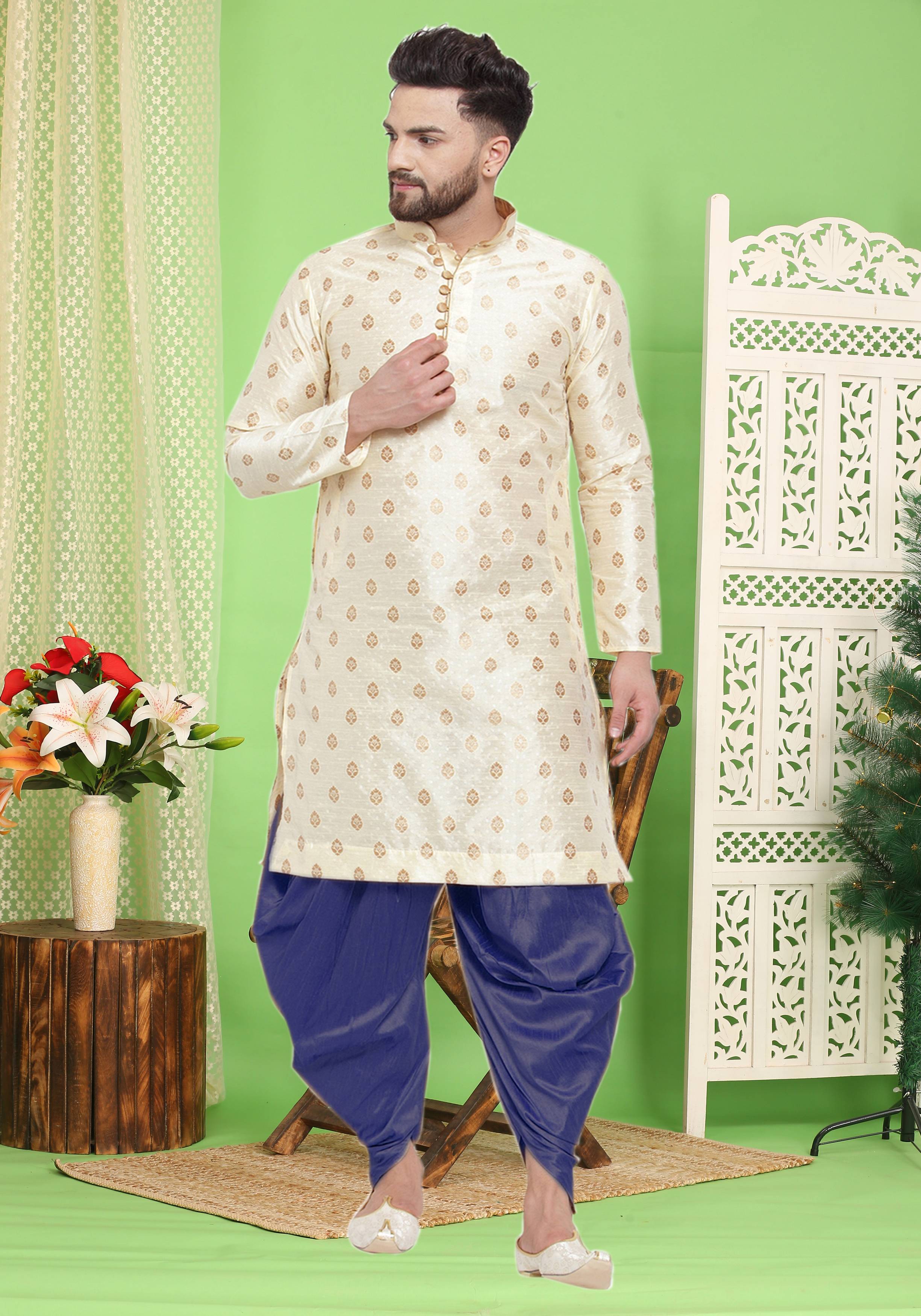 Over Crowd Men Jacquard Kurta Dhoti Set