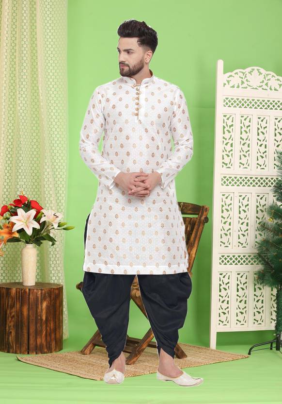 Over Crowd Men Jacquard Kurta Dhoti Set