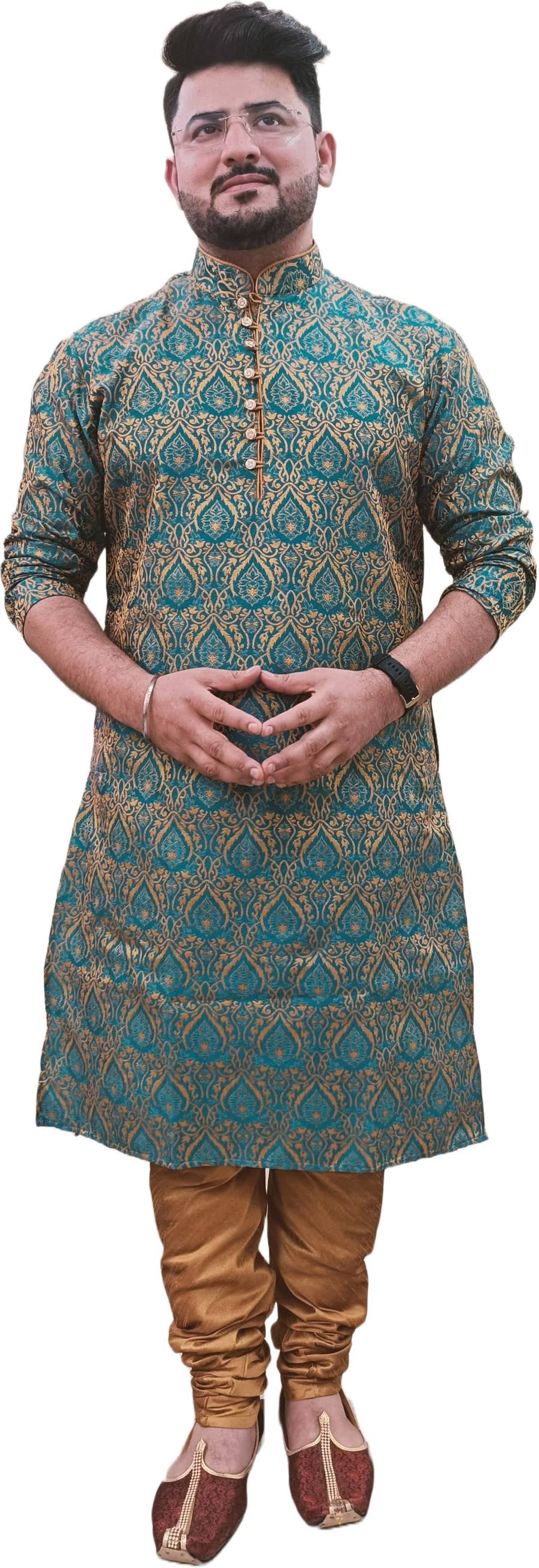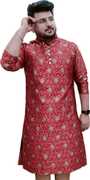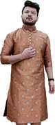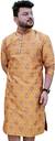Over Crowd Men Printed Straight Kurta (Yellow)