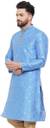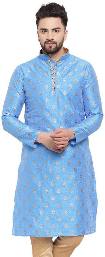 Look your ethnic best wearing this coloured Ganesh print Kurta Special for men from the fashion house of Over Crowd. Made from banarasi Jacquard, this regular-fit Ganesh print Kurta comprises a full-sleeved kurta complete your look with any bottom. Team this outfit with embroidered mojris and rock the party that you attend.