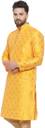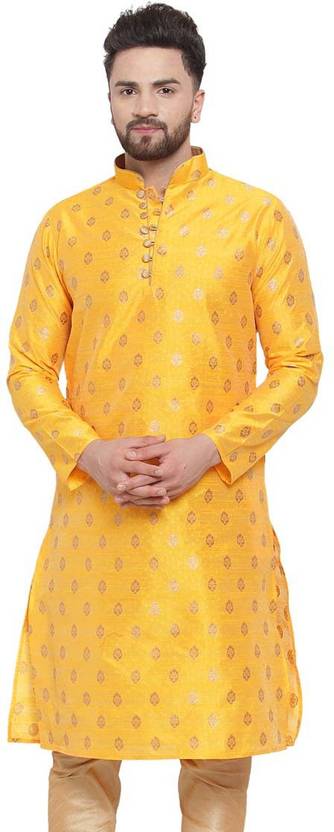 Look your ethnic best wearing this coloured Ganesh print Kurta Special for men from the fashion house of Over Crowd. Made from banarasi Jacquard, this regular-fit Ganesh print Kurta comprises a full-sleeved kurta complete your look with any bottom. Team this outfit with embroidered mojris and rock the party that you attend.