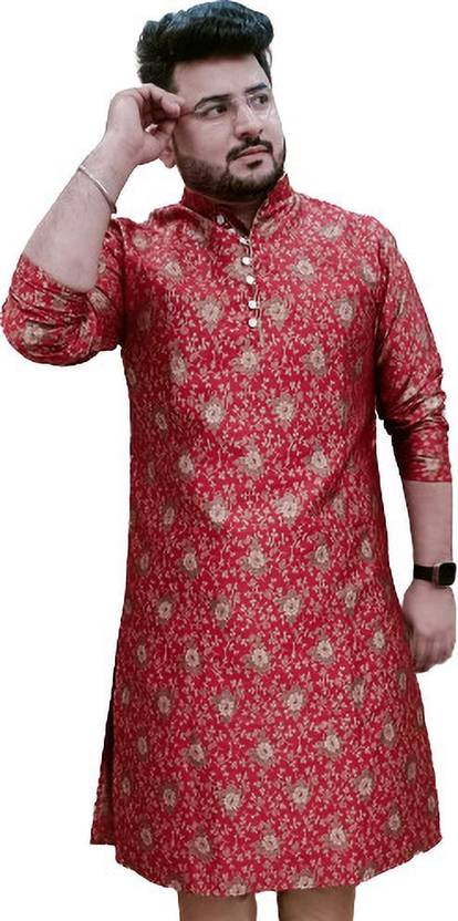 Over Crowd Men Printed Straight Kurta (Maroon)
