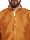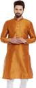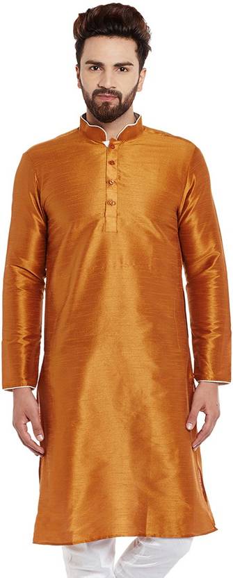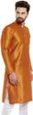 Look your ethnic best wearing this solid coloured kurta for men from the fashion house of Larwa. Made from banarasi dupion, this regular-fit kurta comprises a full-sleeved kurta to complete your look. Team this outfit with embroidered mojris and rock the party that you attend.
