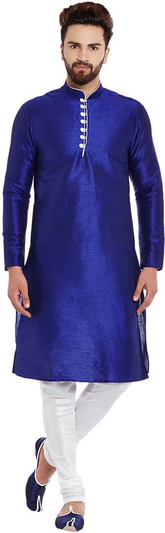 This product is made from Silk and finished in an attractive colors. It features long sleeve, banded collar, and is targeted towards men. Furthermore, it is recommended to be kept away from extreme heat, fire and corrosive liquids to avoid any form of damage.