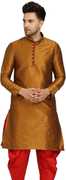 This luxury traditional Indian Art Silk Loop Button kurta includes a top (kurta) .There is traditional Indian design that adds beauty to this set. Loose fitting sleeves and slits along the sides allow for an easy fit and let air circulate freely through the garment. Loose comfortable fitting makes it a great wear