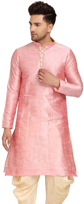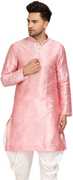 Over Crowd Men Solid Art Silk Straight Kurta  (Pink)