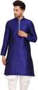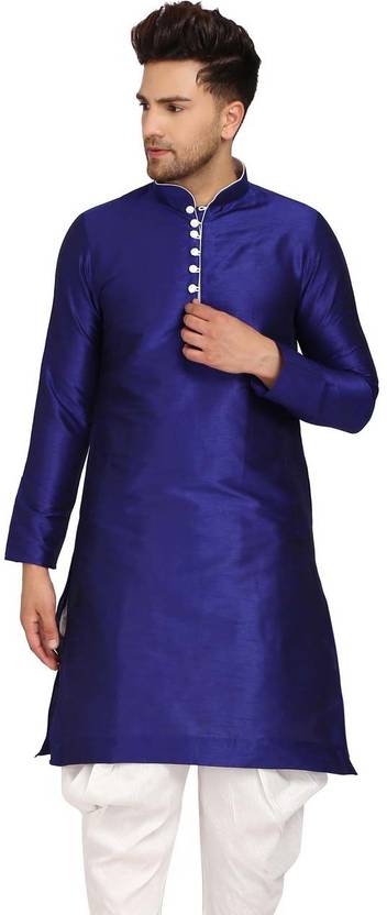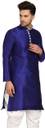 Over Crowd Men Solid Art Silk Straight Kurta (Blue)