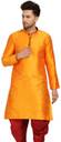 Over Crowd Men Solid Art Silk Straight Kurta (Yellow)