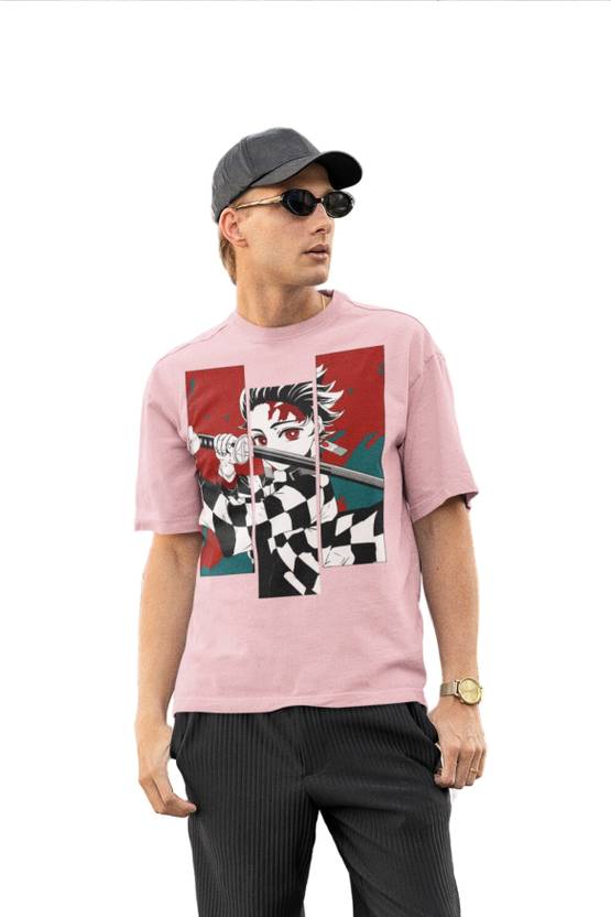 Oversized tshirt Printed Men Round Neck Pink T-Shirt