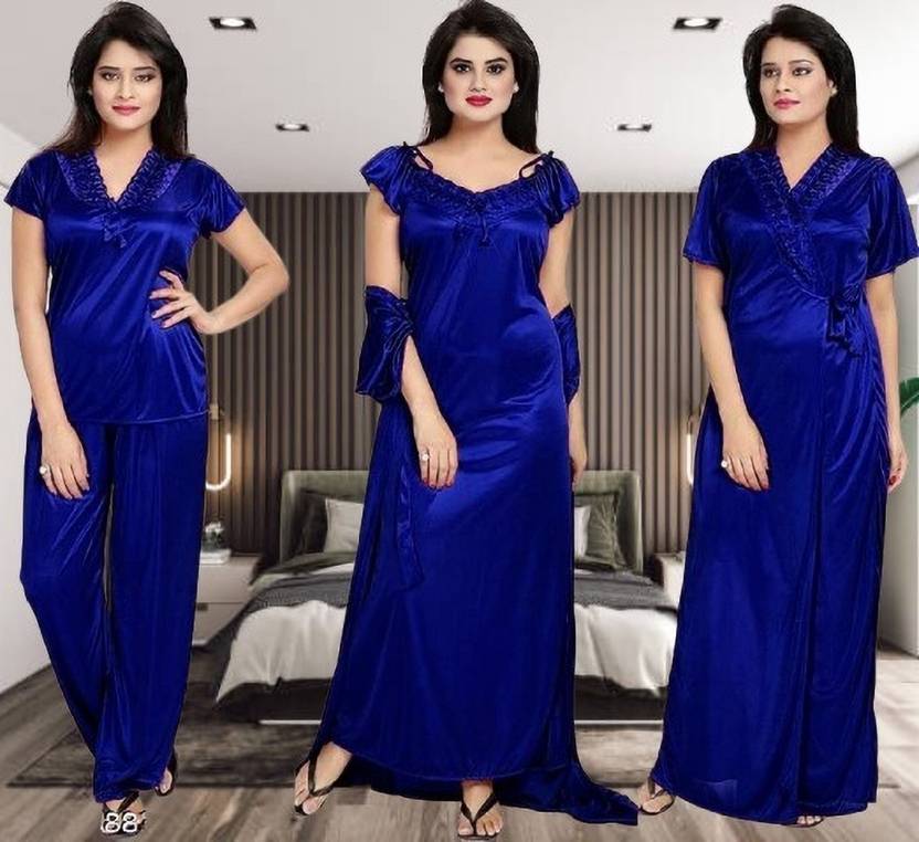 ovida Women Solid Blue Night Suit Set