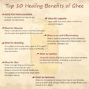 The multiple benefits of this ghee are impressive. It improves energy levels and enhances eyesight, while also supporting muscle and tendon function. Healthier than normal butter, it is packed with vitamins A, D, E, and K, which are great for your skin and overall brain health. It aids in removing impurities from the body, promoting well-being. Incorporating this ghee into your diet ensures you receive these vital health benefits daily.
