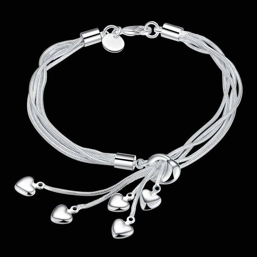 Silver-Plated Multilayered Heart Bracelet for Women/Girl's