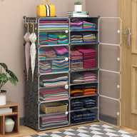 Owme 8 Door Shelf Fabric Carbon Steel PP Collapsible Wardrobe for Kids PP Collapsible Wardrobe (Finish Color - 8-BLACK, DIY(Do-It-Yourself))