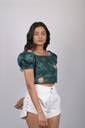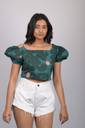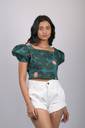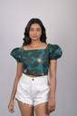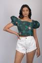 OWO THE LABEL Casual Cap Sleeves Printed Women Dark Green Top
