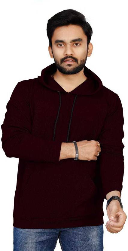 Men Full Sleeve Solid Hooded Sweatshirt