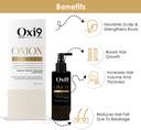 Precautions Avoid contact with eyes. In case of contact with eyes, rinse them immediately and thoroughly., Instruction Close the cap immediately after use, store it in a cool & dry place, and keep it out of reach of kids., Directions of use: 1. Shake The Bottle: Before using the Onion Hair Shot, shake the bottle well. This ensures that the oil is evenly distributed within the product. 2. Prepare Your Hair: Start with dry hair. Comb your hair to remove any tangles or knots and ensure that it's free of any styling products. 3. Maintain Distance: Hold the spray at an appropriate distance from your head. This distance allows for even distribution and prevents your hair from becoming overly saturated. 4. Massage: Gently massage your scalp using the massager provided in the pack, in small circular motions for 10 to 15 minutes and leave for 5 hours. 5. Wash: Clean with Oxi9 Flax Seed shampoo, rinse off thoroughly with water and follow up with Oxi9 Deep Conditioning Spa Mask.