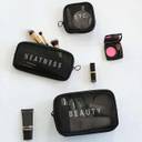 OXMEZA Travel Mesh Makeup Bags Set 3 Pieces Zipper Pouch Travel Toiletry Kit (Black)