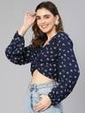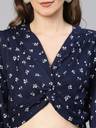 Women Navy Floral Print Gathered Pleate Polyester Crop Top
