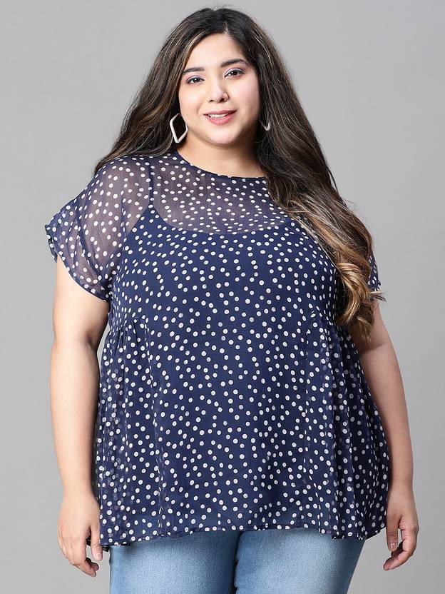 OXOLLOXO Casual Printed Women Dark Blue, White Top