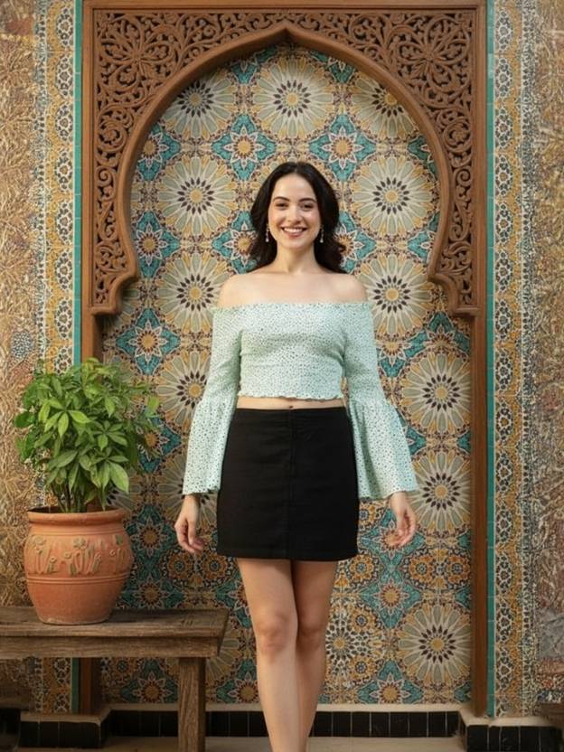 Sweet, sassy, and just the right amount of retro—our Trend Tok Light Green Dot Print Long Bell Sleeve Off-Shoulder Smocked Women Top is a total mood-lifter. Made from soft polyester fabric, this beauty features an all-over dotted print that’s playful yet polished. The off-shoulder neckline brings the flirt, while the smocked bodice hugs your curves like a dream. But the real showstopper? Those dramatic long bell sleeves that add a vintage-chic flair to every flick of the wrist. Whether you're heading out for brunch, a vacay stroll, or just want to feel cute for no reason—this top’s got your back
