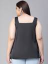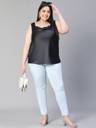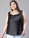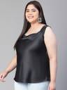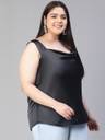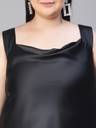 Edge up your classic look with Coaled black shoulder strap cowl neck plus size women's satin top. Styled in the latest trend and fashion, this top has a great fit and quality and is wearable in all seasons and weather. Made wth polyester fabric, It is fashioned with a round neckline, broad shoulder straps, a round hem, and length to the waistline. Pair it with hot-looking shorts, pants, or skirts along with m, minimal classy accessories, a high reel, and a bag, and get the most glaring look with all these.