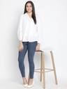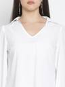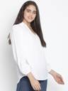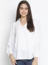 Women Relaxed Fit Polyester Cuffed Sleeves Solid Casual White Top