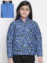 Diva Blue Floral Printed Reversible Quilted Girl Jacket Girls Solid Quilted Jacket