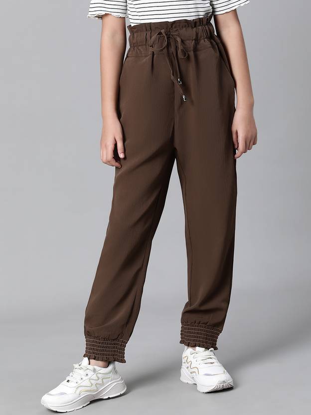 OXOLLOXO Kids Girl Khaki Elasticated Smocked Tie-Knotted Long Pant Regular Fit Girls Khaki Trousers