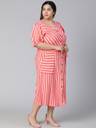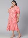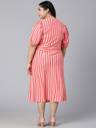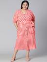 It’s time to show off the world your fashion aura with Umbrage red stripes print button-down plus size women's dress. Made with cotton fabric, it is designed to wear in all seasons and weather. It features an all-over stripes print, v-neck, and short sleeves. For a quirky look, it has a placket of buttons, a tie-knot belt, and a flared hem along with pockets on the sides for your essentials. Don this and get a fresh look this season