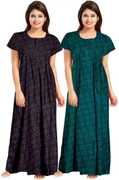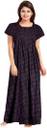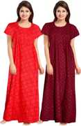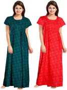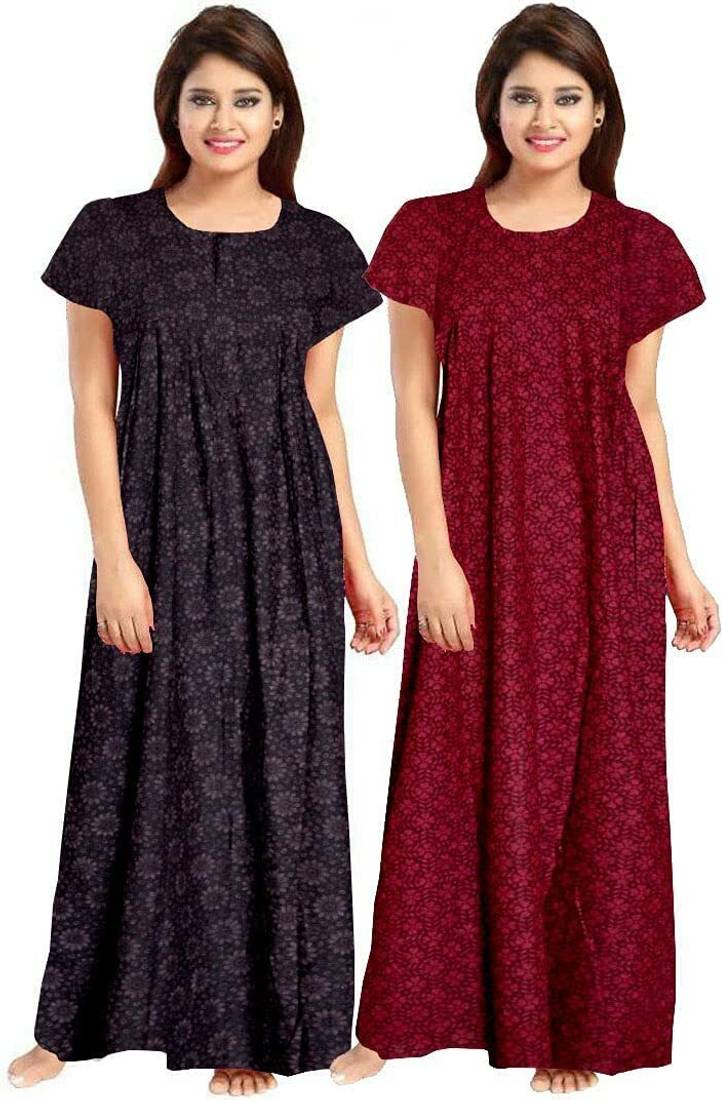The floral pattern on the nighty lends it an elegant touch. The petals of each flower are delicately printed to infuse the nighty with the vibrancy of nature. The leafy details lend a pretty diversion, elevating the overall look of the nighty. Additionally, the nighty has a long length. The long length creates a flowy drape, lending the nighty with a graceful look. These design elements ensure that you look well-dressed even after you have changed into the nighty.