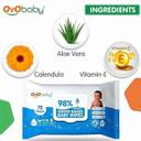 Oyo Baby 98% Water Wipes With Aloe Vera And Vitamin E, Calendula Extracts Baby Wipes (72 Wipes)