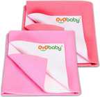 Oyo Baby Cotton Baby Bed Protecting Mat (Dark Blue, Rani Pink, Pack of 2, Small)