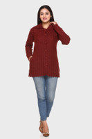 Ozarro Embroidered Collared Neck Casual Women Maroon Sweater