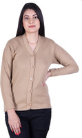 Ozarro Self Design V Neck Casual Women Beige Sweater