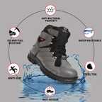 Ozarro Steel Toe Genuine Leather Safety Shoe (Grey, S1, Size 9)