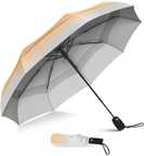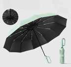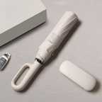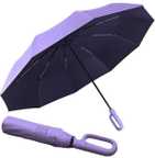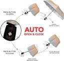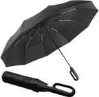 Ozoy foldable umbrellas for men, women are designed with you in mind and built to ensure the ultimate protection and comfort in any weather condition. Measuring just 24.5 inches long when folded and lightweight for easy storage in purses, briefcases, backpacks, and more. Ozoy Travel Umbrella is fortified with 8 resin-reinforced fiberglass ribs that flex slightly to withstand powerful gusts without turning inside out and defends against the elements like no other umbrella. A useful addition to any travel bag, backpack, or briefcase, this Ozoy compact automatic travel umbrella helps keep you dry when the skies turn dark and the pouring rain begins. From warm Spring showers to fierce Fall storms and unruly wind tunnels, the Ozoy umbrella makes for a great take-along companion when you need to get from here to there without getting drenched. Built to last through many rainy seasons, year after year, the Ozoy compact automatic travel umbrella features durable steel construction with a canopy made of reliable, waterproof pongee fabric. Sturdy, yet lightweight, the umbrella helps get you where you're going without having to worry about the weather. Thoughtfully designed, the umbrella's canopy automatically opens and closes with the simple touch of a button. Push the button to open; push the button to close. After the canopy collapses, manually pull the upright support down into the locked position. With the umbrella back in its base, the auto-open mechanism is ready to be used again. The Ozoy compact automatic travel umbrella includes a slip-on sleeve, which helps keep the umbrella neatly stored. The storage sleeve fits securely around the closed-position umbrella, and lifts off easily when it's time to take cover and venture outside. The umbrella comes equipped with a soft, secure-grip handle, which helps ensure a comfortable hold, whether casually window-shopping downtown or dashing from your car to the front door. A wrist strap at the end.