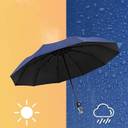Ozoy foldable umbrellas for men, women are designed with you in mind and built to ensure the ultimate protection and comfort in any weather condition. Measuring just 24.5 inches long when folded and lightweight for easy storage in purses, briefcases, backpacks, and more. Ozoy Travel Umbrella is fortified with 8 resin-reinforced fiberglass ribs that flex slightly to withstand powerful gusts without turning inside out and defends against the elements like no other umbrella. A useful addition to any travel bag, backpack, or briefcase, this Ozoy compact automatic travel umbrella helps keep you dry when the skies turn dark and the pouring rain begins. From warm Spring showers to fierce Fall storms and unruly wind tunnels, the Ozoy umbrella makes for a great take-along companion when you need to get from here to there without getting drenched. Built to last through many rainy seasons, year after year, the Ozoy compact automatic travel umbrella features durable steel construction with a canopy made of reliable, waterproof pongee fabric. Sturdy, yet lightweight, the umbrella helps get you where you're going without having to worry about the weather. Thoughtfully designed, the umbrella's canopy automatically opens and closes with the simple touch of a button. Push the button to open; push the button to close. After the canopy collapses, manually pull the upright support down into the locked position. With the umbrella back in its base, the auto-open mechanism is ready to be used again. The Ozoy compact automatic travel umbrella includes a slip-on sleeve, which helps keep the umbrella neatly stored. The storage sleeve fits securely around the closed-position umbrella, and lifts off easily when it's time to take cover and venture outside. The umbrella comes equipped with a soft, secure-grip handle, which helps ensure a comfortable hold, whether casually window-shopping downtown or dashing from your car to the front door. A wrist strap at the end.