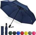 Ozoy foldable umbrellas for men, women are designed with you in mind and built to ensure the ultimate protection and comfort in any weather condition. Measuring just 24.5 inches long when folded and lightweight for easy storage in purses, briefcases, backpacks, and more. Ozoy Travel Umbrella is fortified with 8 resin-reinforced fiberglass ribs that flex slightly to withstand powerful gusts without turning inside out and defends against the elements like no other umbrella. A useful addition to any travel bag, backpack, or briefcase, this Ozoy compact automatic travel umbrella helps keep you dry when the skies turn dark and the pouring rain begins. From warm Spring showers to fierce Fall storms and unruly wind tunnels, the Ozoy umbrella makes for a great take-along companion when you need to get from here to there without getting drenched. Built to last through many rainy seasons, year after year, the Ozoy compact automatic travel umbrella features durable steel construction with a canopy made of reliable, waterproof pongee fabric. Sturdy, yet lightweight, the umbrella helps get you where you're going without having to worry about the weather. Thoughtfully designed, the umbrella's canopy automatically opens and closes with the simple touch of a button. Push the button to open; push the button to close. After the canopy collapses, manually pull the upright support down into the locked position. With the umbrella back in its base, the auto-open mechanism is ready to be used again. The Ozoy compact automatic travel umbrella includes a slip-on sleeve, which helps keep the umbrella neatly stored. The storage sleeve fits securely around the closed-position umbrella, and lifts off easily when it's time to take cover and venture outside. The umbrella comes equipped with a soft, secure-grip handle, which helps ensure a comfortable hold, whether casually window-shopping downtown or dashing from your car to the front door. A wrist strap at the end.