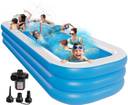 P for Pogu 10 Feet Rectangular Inflatable Pool with Electric Pump Swimming Bathtub for Kids (Blue)