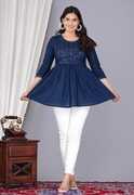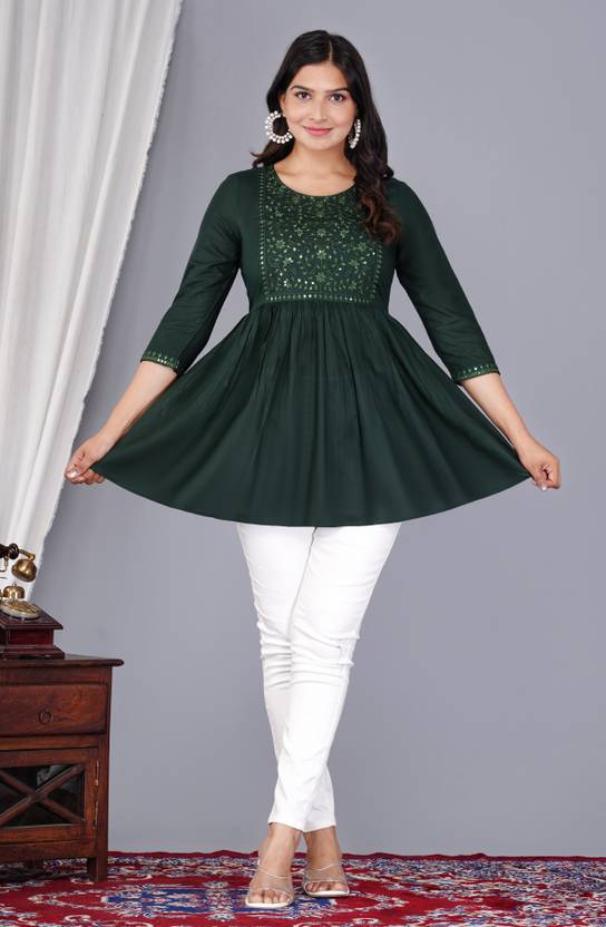 P PRIYA FASHION Casual Embellished, Embroidered Women Dark Green Top