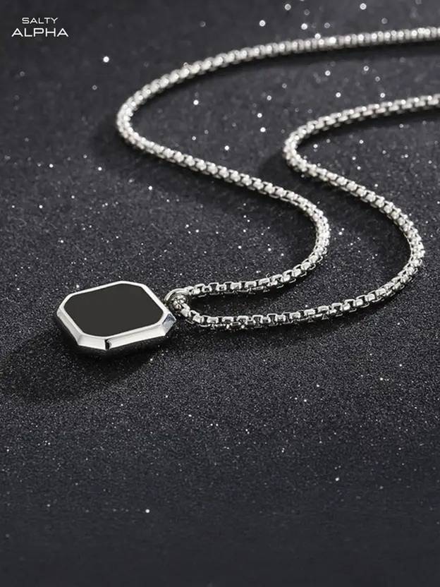 Geometric Black Stone Pendant for Men and Women Hip Hop Pendant Necklace