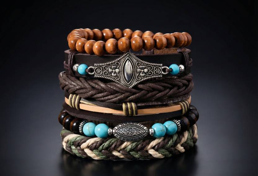 Men Leather Bracelet | Stylish Handmade Beaded Bracelet for Men | Turquoise Stone & Metal Charm | Adjustable Boho Wrist Bracelet