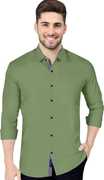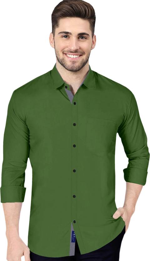 P & V Creations Men Solid Casual Green Shirt