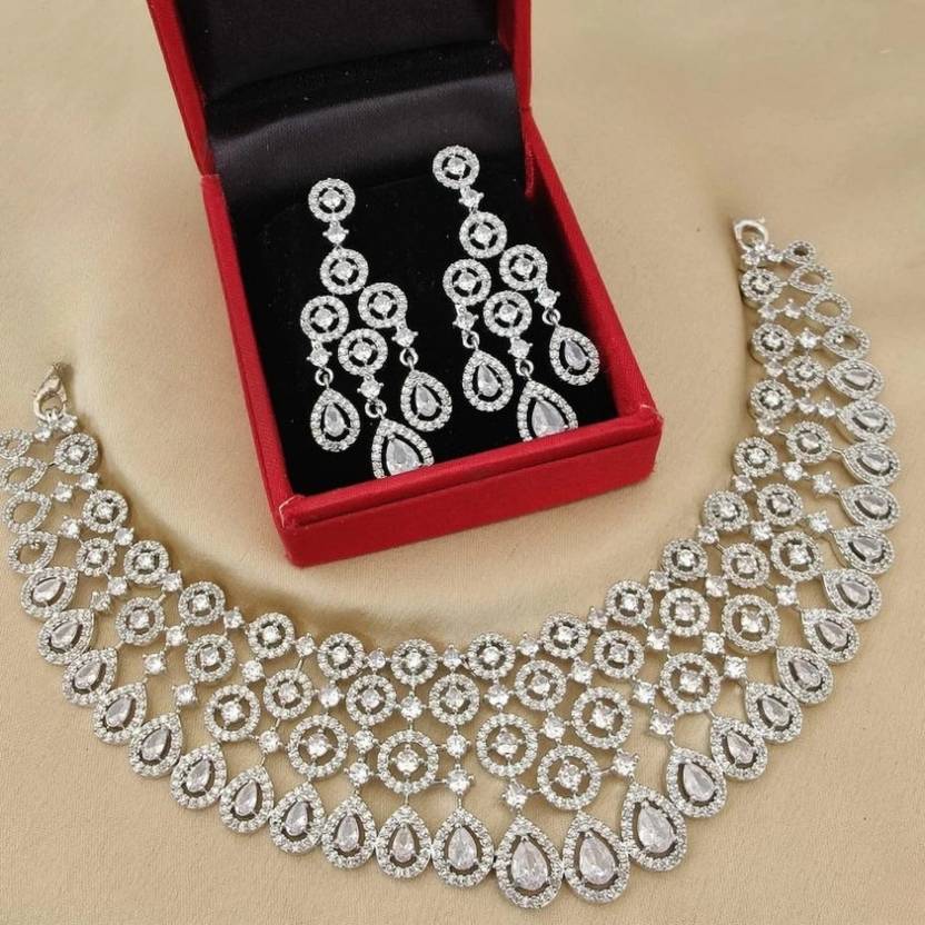 Sterling Silver or Gold Setting: The necklace and its components are usually set in a base metal like sterling silver, gold-plated silver, or even white gold. These settings enhance the luxurious appearance of the diamonds.