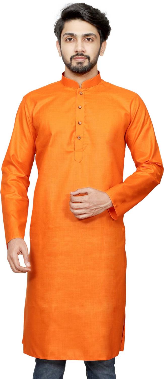 Paasbaan Men Solid Straight Kurta (Orange)